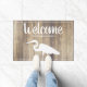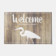 Schmücken Sie Ihre südliche Louisiana-Türstufe mit dieser rustikalen eleganten gebürtigen Vogelfußmatte! Dieser schöne und noble südliche weiße Reihervogel und hölzerne Dockplankendruckfußmatte ist ein Kinderspiel für elegantes