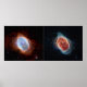 Dieser nebenseitige Vergleich zeigt Beobachtungen des südlichen Ringnebels in nahezu infrarotem Licht, bei verlassen, und Mittelinfrarot, rechts, vom James Webb Weltraumteleskop. Diese Szene wurde von einem weißen Zwergstern geschaffen - den Überresten eines Sterns wie unserer Sonne, nachdem er seine äußeren Schichten vergossen und durch nukleare Fusion den Brennstoff aufgegeben hatte. Diese äußeren Schichten bilden nun die ausgeworfenen Muscheln entlang dieser Sichtweise. In der Near-Infrarred Camera (NIRCam) scheint der weiße Zwerg am unteren links des hellen, zentralen Sterns zu liegen, der teilweise durch einen Beugungsstrahl verdeckt ist. Der gleiche Stern erscheint - aber heller, größer und röter - im Mid-Infrared Instrument (MIRI) Bild. Dieser weiße Zwergstern ist in dicken Staubschichten eingeklemmt, die ihn größer erscheinen lassen. Der hellere Stern auf beiden Bildern hat noch nicht seine Schichten abgelegt. Er umkreist den dunkelweißen Zwerg genau und hilft, das, was er auswirft, zu verteilen. Über Tausende von Jahren und bevor es zu einem weißen Zwerg wurde, warf der Stern regelmäßig Masse aus
