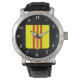 Mit diesem speziell für Südvietnam entworfenen Wristwatch-Coat of Arms ist es ein internationales Ambiente. Das Gesicht der Uhr hat das Wappen Südvietnams auf schwarzem Hintergrund. Das Aussehen ist sehr sauber und elegant. Passen Sie die Uhr an, während Sie gewollt haben und Spaß haben! Dies ist ein fantastisches Geschenk für einen Freund, ein Familienmitglied oder für sich selbst. Weitere Informationen hierzu finden Sie unter: www.zazzle.com/azorean* #southvietnamatch. #vietnam #genealogy. #vietnamhistory #vietnameseeiches