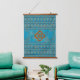 Südwest Bergspitzen Türkisfarbene geometrische Pri Wandteppich Mit Holzrahmen