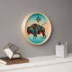 Dies ist eine einzigartige "One of a Kind" Südwest Buffalo Rundholz Wall Clock! Es verfügt über ein südwestliches Buffalo oder Bison und Sun auf einem türkisfarbenen und orangen Sonnenuntergang! Original Art Design von Künstler Kerry Miller.