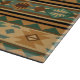 Indianisches indisches geometrisches Muster von warmen Erdtönen in Bräunung, Sand, Braun und Grün, mit Akzenten von Schwarz. Ideal für die Dekoration dieses Colorado Wüstenlifestyle.