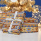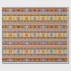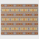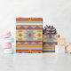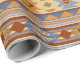 Südwestlich von Native Amerikanische Ureinwohner geometrisches Muster mit warmen Erdtönen aus sandgelb, schieferblau-grau und rostig bräunlichen, orangefarbenen und roten Farbtönen.
