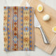 Südwestlich von Native Amerikanische Ureinwohner geometrisches Muster mit warmen Erdtönen aus sandgelb, schieferblau-grau und rostig bräunlichen, orangefarbenen und roten Farbtönen.