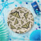 Dieses Kunstwerk besticht durch den Schmetterling aus schwarzem und gelbem Western, einer der schönsten großen Schmetterlinge im Südwesten. Die Originalkunst basiert auf Fotografien, die die Künstlerin in ihrem eigenen schmetterlingsfreundlichen Garten in Arizona aufgenommen hat. Dieses Design zeichnet sich durch die Schmetterlingskunst in einem rundum-runden Muster auf beigem Hintergrund mit rot-blauen Flecken aus.