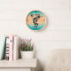 Brighten Sie Ihre Zuhause mit dieser einzigartigen Kokopelli Rundholzmauer-Uhr! Es ist ein südwestlicher Kokopelli, der Flute spielt und unter der Sonne tanzt, in Türkis, Orange und Schwarz....auf einem türkisfarbenen und orangefarbenen Hintergrund! Original Art von Künstler Kerry Miller!