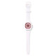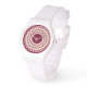 Helle kreisförmige Zickzack Muster umkreisen sich in dieser farbenfrohen Uhr. Die Farben sind rot, braun und weiß, wobei die Mitte in rotem Massiv gehalten ist. Dieses Muster hat einen festlichen südwestlichen Stil.
