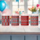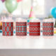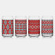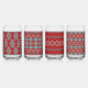 Vier verschiedene originelle Designs in fett rot und türkisfarben geometrischen Mustern auf einem Set von vier koordinierten Gläsern von Artellus. Die Künstlerin wurde durch die Farben und Muster rund um ihre Zuhause in der Wüste im Südwesten inspiriert. Artellus Artworks™ bietet originale Kunst und Designs, die urheberrechtlich geschützt sind und eine versteckte Signatur enthalten. Artellus Artworks™, Marilynn Flynn, Zazzle und Zazzle Affiliates und Zazzle Referrer sind die einzigen autorisierten Verkäufer von Artellus Artworks™ Designs. Kopieren Sie nicht.