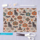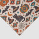 Ein lebendiges, südwestlich inspiriertes Halloween-Wiederholungsmuster, das traditionelle gruselige Symbole mit kühner Wüstengeometrie verbindet. Schwarze Katzen, Fledermäuse, Halbmonde, Hexenhüte, Spinnen und Spinnennetze vermischen sich mit reich gemusterten Kürbissen und auffälligen Navajo-Motiven in warmem Tonorange, Türkis, Teal und tiefem Holzkohlegrau. Vor einem weichen, pergamentfarbenen Hintergrund wirkt das Design festlich, grafisch und kulturell inspiriert statt gruselig. Die rhythmische Anordnung und die erdige Farbpalette verleihen dem Muster eine gemütliche Wüsten-Nacht-Atmosphäre.