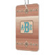 Personalisieren Sie diesen Lufterfrischer mit Ihren eigenen Initialen oder Monogramm auf ein Design, das durch die phantastischen Sandsteinfarben inspiriert wurde, die die Künstlerin bei einem Besuch der Holos des Bryce Canyon und der geometrischen Gestaltung ihrer Umgebung im Südwesten der Wüste sah. Texturierte ombre Bands von Rosa, Pfirsich und Siena Sandsteine werden von Bands mit Coppery Conchos und türkisfarbenen Steinen auf den Diamanten im südwestlichen Stil betont. Ihr Kauf meiner Designs auf Zazzle-Produkten hilft mir, meinen Lebensunterhalt als Künstler zu sichern! Artellus Artworks™ bietet Originalkunst und -designs, die von einem menschlichen Künstler kreiert wurden - kein Clipart und keine A.I. Artellus Artworks™, Marilynn Flynn, Zazzle und Zazzle Affiliates und Zazzle Referrers sind die einzigen autorisierten Verkäufer von Artellus Artworks™ Designs. Kopieren oder Verschrotten Sie nicht.