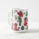 Diese festliche und mädchenhafte Western Howdy Christmas Cowgirl-Tasse bietet handgezeichnet Illustrationen von Xmas Cowgirl Stiefel, Hüte, Fingern, Kakteen, heiligen Beeren und Sternen, alle auf einem eleganten, weißen Hintergrund. Personalisieren Sie Ihre Monografie auf beiden Seiten der Tasse.