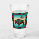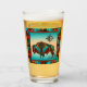 Dies ist ein einzigartiges "One of a Kind" Südwest Buffalo und Sun Bierglas! Es verfügt über ein südwestliches Buffalo und eine Sonne auf einem türkisfarbenen und orangen Sonnenuntergang Hintergrund...Umgeben von einer Südwestgrenze in Türkis, Orange & Schwarz. Original Art Design von Künstler Kerry Miller.