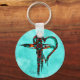 Setzen Sie Ihre Schlüssel auf diese einzigartige "Eine von einer Art" Südwestkreuz und Herz-Keykette! Es hat ein großes spirituelles Südwestkreuz und Herz in Türkis, Orange und Schwarz auf Türkis und Weiß Hintergrund! Original Art Design von Künstler Kerry Miller.
