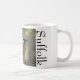 Ein paar Suffolkschafe, Fotografie von zwei Schwarzweiss-Schafen, sunlit Hirtenszene der Schafe in einer Wiese oder Barnyard mit einem Sonnenlichtglühen des späten Nachmittages; mit dem Wort "Suffolk", zum vom Foto zu berichtigen und verlassen. Um die Schriftartgröße zu ändern, benutzen Farbe oder Art, die besonders anfertigen Funktion. Die Suffolkschafe stammten aus England als Kreuzung von Southdown-RAMs auf gehörnten Mutterschafen Norfolks. In Amerika Suffolks ist eine populäre Schafzucht und enthält ungefähr 60% vom Bestand der inländischen Schafe. Suffolks haben offene Gesichter des Schwarzen (keine Fleece auf dem Gesicht), schwarze Beine und eine mittlere dichte Wolle. Suffolklämmer und -schafe neigen, robust und aufgeschlossen zu sein. Diese Tasse macht ein großes Geschenk für Schafleute, -Bauern und -liebhaber, -fans der Suffolkschafe und -lämmer, jedermann, das diese liebenswerten leichten Tiere bewundert oder anhebt; oder jedermann geboren im Jahr der Schafe oder mit einem Schaftiergeistführer oder -totem. Foto: Jacquie Wingate.