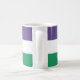 Dieses Design zeigt die Fahne der Suffragette-Bewegung, die im 20. Jahrhundert für das Wahlrecht bei öffentlichen Wahlen kämpfte, die als Frauenwahlrecht bekannt sind. Der Begriff "Suffragette" wurde zunächst geprägt, um die Bewegung zu vermindern, aber die beteiligten Frauen akzeptierten und begrüßten den neuen Namen bald als Zeichen ihrer Weigerung, nur männliche Wahlen zu akzeptieren. Die Bewegung inspiriere auch heute noch feministische und andere politische Kampagnen.