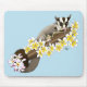 Ein niedlicher Zucker-Gleiter auf einem Baumzweig mit kleinen rosa, weißen und gelben Blumen herum. Der Segelflugzeug und die Blume sind alle in einem Tätowierungsstil gezeichnet, in einem blauen Hintergrund