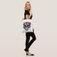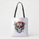 Eine stilvolle Tasche mit kühlem Zuckerschädel, inspiriert durch die lebhaften und aufwändigen Designs des Tages der Toten. Ideal, um das Wesentliche zu tragen und gleichzeitig eine Touch von kulturellem Charme und edgem Flair zu Ihrem Outfit hinzuzufügen.