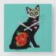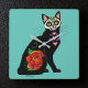 Schwarze Katze mit dem Tag des toten Zuckerschädels Make-up.