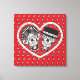 Dia de los Muertos (Tag der Toten) Zucker Schädel Paar Set auf einem roten Herz mit weißen Blume.