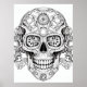 Sugar Skull drawing images, art with nuts and bolts, in black and white, with a white background, on a wall poster for you to color or display.