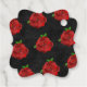 Vintage Sugar Skull Wedding Favor Tag featuring a romantic sugar skull couple decorated in a lush bed of deep red roses on a dramatic textured black background. Created to coordinate with the Vintage Red Sugar Skull Collection, this bold and artistic favor label adds gothic elegance to your wedding celebration.
