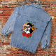 Hinter einer Frau sitzt ein Zuckerschädel, der einen Tag des toten Zuckerschädels auf allen im Jugendstil gezeichnet Sachen trägt.
