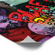 Karo aus dieser Diablo Charakter Graffiti-Kunst mit Diablo mit einer Flamme in der Hand, auf einem Hintergrund von düsteren Sensenmännern, Schädeln und Blut.