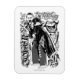 Check out Joker bent forward laughing, surrounded by tattoo style icons and phrases.