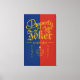 Selbstmordkommando - Eigentum des Jokers. Orangefarbene Schrift mit rotem und blauem Hintergrund.