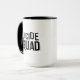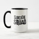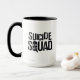 Black and White Suicide Squad logo with a Skull in the letter Q. White letters on black background.