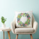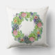 Mit diesem Kissen, das mit einem üppigen Kranz aus Sukkulenten, rosa, rot und pfirsichfarbenen Blume und Touchs aus lila Blattwerk geschmückt ist, können Sie Ihre Möbel erheben.