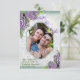 Sukkulente Bouquets für eine Hochzeitsdekoration im Garten mit Hues of Sea Green & Lavender-Tönen und weißen Spitzen für eine Save the Date Karte