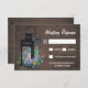 Sukkulente Rustikale Holz Laterne Hochzeitskarten RSVP Karten - mit einem alten Holzhintergrund mit einer schwarzen Laterne gefüllt mit Aquarellsukkulenten und wilden Blume. Siehe dazu passende Designprodukte, die in der Sammlung auf dieser Seite gefunden wurden.