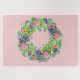 Bringen Sie die Natur in Ihre Zuhause mit diesem Puzzle, das mit einem üppigen Kranz aus Sukkulenten, rosa, rot und pfirsichfarbenen Blume und Touchs aus lila Blattwerk geschmückt ist.