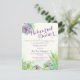 Schöne handgemalte Sukkulente auf unserer auserlesenen Gartenabend Probe Einladung. Einfache und kleine 4,5 x 5,5 große Einladung zum Probe-Dinner vor dem großen Hochzeitstag.