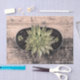 Sukkulente Topf Pflanze blumengeschmückte rustikale Land Vintagen grünen Sepia Handwerk decoupage Taschpapier. Schöne, botanische Holztextur bedruckte Geschenkverpackung. Bildrecht Marg Seregelyi Fotografie.