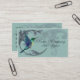Eine nostalgische Geschäftskarte mit einem Vintagen, Kunst Nouveau Blick: Ein hübscher Summenvogel im turquise, Blues und Grüntöne auf einem blasses turquise blauen Hintergrund, der mit Kunst Nouveau verziert wird, reden Verzierungen an. Eine sehr stilvolle und elegante Karte.