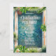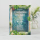 Boho elegante mediterrane Stil Sommer tropische "Abschluss Pool Party" Design mit Ihren Party Details überlagert auf einem wunderschönen aqua gekachelten Pool umgeben von einem schönen, grünen tropischen Blätter.