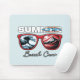 Ein kühnes Mousepad mit roter Sonnenbrille, die die Wellen reflektieren, und einem Berg mit der Phrase "Summer Beach Crew". Dieses lustige und abenteuerliche Kunstwerk verbindet Strandvillen mit Abenteuer im Freien, perfekt für diejenigen, die sowohl die Küste als auch die Berge Liebe. Ideal für Sommerreisende, Strandliebhaber, Surfer, Camper und Abenteurer im Freien. Ideal für Ferien, Gruppenreisen, Beach Party und Feierlichkeiten bei warmem Wetter.