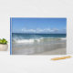 Summer Beach Wedding mit weißen floribunda Rose über den Bogen, wenn Sie auf einem sandbedeckten Teppich mit Wellen im Hintergrund abstürzen, um eine Palette zu Set die Szene für Ihren großen Tag personalisieren inspiriert.