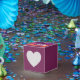 Dekoratives Sommerstrand Party Nachtdesign mit Palmen und Glitzern im Hintergrund.
