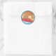 Cooler, farbenfroher Surfvogel, der bei Sommerhitze auf einem Surfbrett eine Welle reitet.