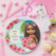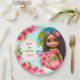 Niedliche exotische tropische Sommer Hawaiian Thema Mädchen Geburtstag Party Paper Teller mit dem niedlichen kleinen Ti Mädchen mit Hibiskus Blume Bouquet in wunderschönen hellen Sommerfarben. Personalisieren Sie den Text einfach und vergessen Sie nicht, den Laden für passende Artikel zu besuchen. :) Kate Eden Art
