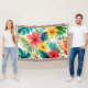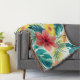 Die helle und fröhliche Decke des Wurfs zeichnet sich durch ein farbenfrohes, rotes Design aus, das mit orangefarbenen, roten Blume und großen tropischen Blätter, die durch das Gewebe kaskadiert sind, harmoniert. Dieses fröhliche visuelle, das die Essenz des Sommers einfängt, schafft dieses grafische Design eine erfrischende Atmosphäre.