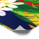 Die exotischen Blume werden von tropischen Blätter begleitet, die in der tropischen Atmosphäre mit einem Tukanvogel geschmückt sind.