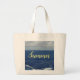 Der Sommer ist in gelber Schrift gegen hübsche blaue Meereswellen mit weißen Schaumwellen geschrieben, und hübscher blauer Himmel und Wolken über dem Kopf. Coole Tasche für alle, die Lieben gehen zum Strand, Angebote, Urlaub. Original Fotografie von TamiraZDesign.