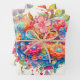 Umhüllende Papierblätter mit einer farbenfrohen Sammlung von Frühlings- und Sommerkollektionen Blume. Rosa Orange und Blau dominieren das Farbschema. Helle und mutige Blumenarrangements strahlen Glück aus. :