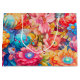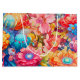 Geschenktasche mit einer farbenfrohen Sammlung von Frühling und Sommer Blume. Rosa Orange und Blau dominieren das Farbschema. Helle und mutige Blumenarrangements strahlen Glück aus. :
