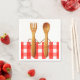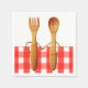Hochzeitsnapkins mit lustigem Löffel und Gabelbräu und Bräutigam auf rotem Gingham-Hintergrund für GRILLEN, Brautparty in der Küche oder Picknick-Hochzeitsveranstaltung.
