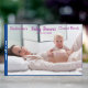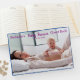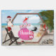 Sommerferien am Strand zu Weihnachten mit tanzenden Pinguinen unter den Palmen, um für ein kleines Mädchen oder einen kleinen Jungen mit Ihrem eigenen Foto zu personalisieren (Danke sagt der Storch im Hintergrund)